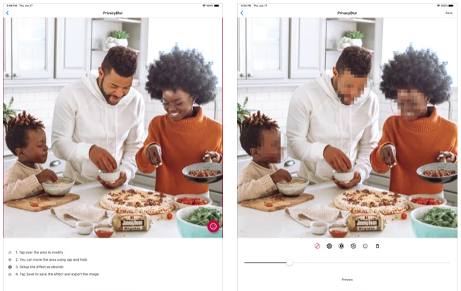 The goal of v2.0 was to enable the creation of multiple blurred areas simultaneously and persist the changes only at the end. The developers had to refactor the code a little bit and faced some performance issues, but it went well. We also changed some UX constructs again, ditched the Apply/Cancel buttons and added a preview mode.