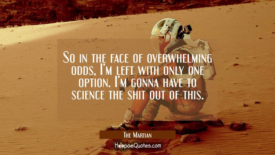 You might remember this sentence Matt Damon said in the the movie "The Martian":It feels kind of the same in this book.
